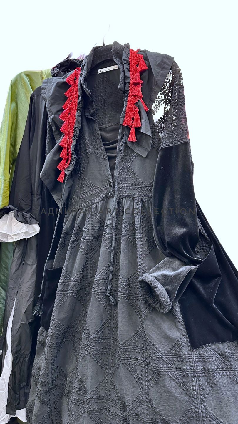 Хлопковое платье «Адмирал Art Collection» с вышивкой шелк на сетке, панбархат на шелке, черное, длина макси, приталеное, женское